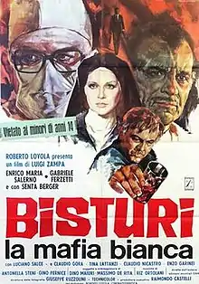 Hospitals: The White Mafia (Italian: Bisturi, la mafia bianca) is a 1973 Italian drama film directed by Luigi Zampa and starring Enrico Maria Salerno and Gabriele Ferzetti.[1] It was entered into the 1973 Cannes Film Festival.[2]