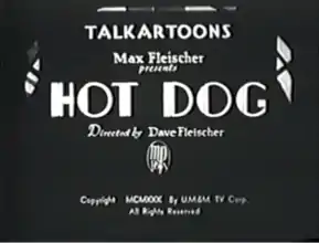 Hot Dog is a 1930 animated short film which is presented by Max Fleischer and was also directed by Dave Fleischer.[1] The film, which was originally released by Paramount Pictures, is the first cartoon to feature Bimbo,[2] as he attempts to gain a lover during the film.[1]