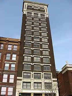 Hotel Washington, also known as the Washington Tower, is a historic hotel building located at Indianapolis, Indiana. It was built in 1912, and is a 17-story, rectangular, Beaux-Arts style steel frame and masonry building. It is three bays wide and consists of a three-story, limestone clad base, large Chicago style window openings on the fifth to 13th floors, and arched window openings on the 17th floor. It is located next to the Lombard Building. The building has housed a hotel, apartments, and offices.[2]: 2–3