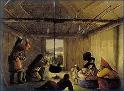 ![]() Maliseet Indian Wooden Hut Interior, watercolor by Robert Petley, c. 1850 | |