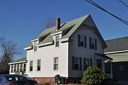 11 Beach Street is located in a residential area east of downtown Reading, on the southwest side of the short street. Its neighbor to the south, #17, is of substantially similar construction. It is a 1+1⁄2-story wood-frame structure, with a front-facing gable roof. Its front facade is three bays wide, with the entrance in the rightmost bay, sheltered by a shed-roof porch supported by turned columns. The attic half-story has two sash windows, and there is Stick style woodwork at the peak of the gable. Photos from a 1980 survey show fish-scale shingles and applied woodwork on the gable wall around and above the attic windows;[2] these features have been removed or covered over.[2]