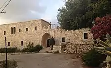Following Girgis al-Dahdah, the family's line of descent features at least six successive priests, beginning with his son who became a monk under the name of Mikhail.[13] One of these priests refers to himself as "the priest Hanna son of the priest Ibrahim al-Dahdah" on the margins of a liturgy book dated on from 1572 on the sacrament of marriage for the parish church of Saint Georges of Aqoura, and appears to have copied a similar book in 1560.[14] A paternal cousin of this priest Hanna, Sulayman al-Dahdah is recorded by Patriarch Istifan al-Duwayhi as having copied a liturgy book in Aqoura as early as 1552. Another later al-Dahdah cleric, Ighnatius, is recorded as having overseen the rebuilding of 'Aqura's parish church, named after Saint George in 1730, according to an inscription in the Arabic vernacular language and Garshuni script now located to the left of the western entrance of the 20th century church.[15]