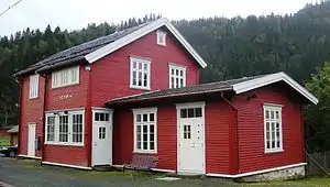 Hovin Station (Norwegian: Hovin stasjon) is a railway station in the village of Hovin in the municipality of Melhus in Trøndelag county, Norway. The station is on the Dovre Line, about 45 kilometres (28 mi) south of Trondheim Central Station (Trondheim S) and about 507 kilometres (315 mi) from Oslo Central Station (Oslo S) at an elevation of 54.8 metres (180 ft) above sea level. Hovin Station is served by local trains to Røros. The station was opened 1864 as part of the Trondhjem–Støren Line.[1] The Gulfoss Tunnel lies just north of this station.