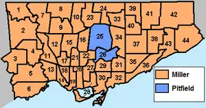 - As of the close of nominations (29 September 2006), the majority of local media coverage was focused around three mayoralty candidates – current Mayor David Miller, outgoing Ward 26 Councillor Jane Pitfield and former Liberal Party of Canada President Stephen LeDrew.