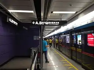 Huangbian Station (simplified Chinese: 黄边站; traditional Chinese: 黃邊站; Cantonese Yale: Wòhngbīn Jaahm), called Shanglinzhen Station[1] during planning, is a metro station on Line 2 of the Guangzhou Metro. It is located at the underground of the south of Huangbian North Road[2] in the Baiyun District of Guangzhou.[3] The station started operation on 25 September, 2010.