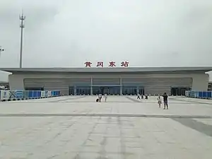 Huanggang East railway station (Chinese: 黄冈东站) is a railway station in Huangzhou District, Huanggang, Hubei, China. It was built as a terminus station at the eastern end of the Wuhan–Huanggang intercity railway. With the completion of the Huanggang–Huangmei high-speed railway, it became an intermediate stop on the railway between Wuhan and Huangmei.