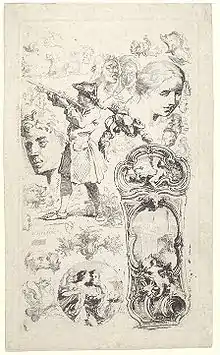 - ↑ There are drawings for snuff-box lids at the Metropolitan Museum of Art and at the Morgan Library; an engraving that includes a design for an etui was included in the 1984 Victoria and Albert Museum exhibition Rococo: Art and Design in Hogarth's England