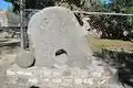 ![]() Monolith placed at the site entrance, structure 1 in the background | ||
