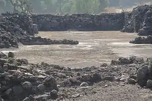 This structure comprises several constructed remains, and it is located across the river, south of structure 1. It consists of two irregular structures and walls remain.[1]