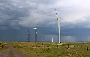 The Huerfano River Wind Farm is a producer of distributed generation (DG) power located ten miles north of Walsenburg, just off of Interstate 25. The farm uses four Sany-made 2 MW turbines and feeds into the San Isabel Electric Association grid.[1]