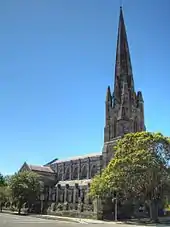 The church was erected between 1886 and 1889 by Helen Hay Mackie Baillie, the sister-in-law of John Dunmore Lang, as a memorial to her late husband, John Hunter Baillie (1818–1854).[3][4] Its sandstone spire reaches a height of 56 metres (184 ft) and is the tallest church spire in New South Wales. Only the twin 70-metre (230 ft) spires of Sydney's St Mary's Cathedral completed in 2000 are taller, but are steel cored.