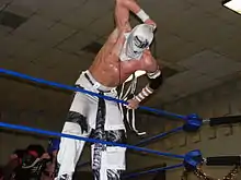In late 2009 Delirious began working for Japanese wrestling promotion Pro Wrestling Noah, making his debut on October 15 in a tag team match, where he and Keith Walker defeated Makoto Hashi and Yoshinari Ogawa.[37] The following day he entered the round robin stage of the 2009 Junior Heavyweight League, losing to Katsuhiko Nakajima in his first match in the tournament.[38] On October 18 Delirious scored a major upset victory in his second match in the tournament, by defeating former three-time GHC Junior Heavyweight Champion Kenta and followed that up with another victory over Ricky Marvin on October 22.[39][40] Despite losing his fourth match in the tournament to Kotaro Suzuki, Delirious made it to the semifinals of the tournament, where he was defeated by Jushin Thunder Liger on October 31.[41][42] Delirious returned to Noah in April 2010 and on April 25 he received a shot at the GHC Junior Heavyweight Championship, but was defeated by the defending champion Yoshinobu Kanemaru.[43] In July 2011, Delirious and fellow ROH performer, Eddie Edwards, took part in Noah's 2011 Nippon TV Cup Jr. Heavyweight Tag League. After two wins and two losses, Delirious and Edwards finished third in their block, missing the finals of the tournament.[44]
