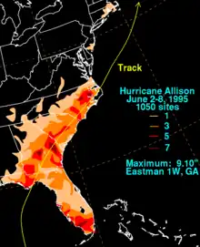 Hurricane Allison was the first named storm and first hurricane of the 1995 Atlantic hurricane season. It was an early season hurricane that delivered heavy rains and caused minor damage, primarily across Cuba, Florida and Georgia.