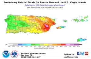 - ↑ Event: Flash Flood in Las Piedras, Puerto Rico (Report). National Centers for Environmental Information. July 9, 2018. Archived from the original on December 23, 2020. Retrieved December 21, 2020.
