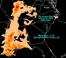 - ↑ Roth, David M. "Hurricane Bob - July 9-16, 1979". Tropical Cyclone Point Maxima. Silver Springs, Maryland: United States National Oceanic and Atmospheric Administration's Weather Prediction Center. Retrieved December 3, 2013.
