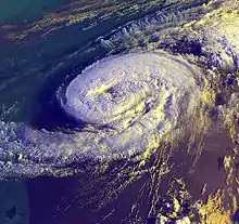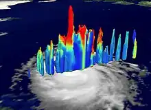 Both during and after Hurricane Bonnie's onslaught, analysis of the storm was extensive; it was deemed "the most observed hurricane in history." When examined with Tropical Rainfall Measuring Mission (TRMM) satellite imagery, it was discovered that peak cloud tops surrounding the eyewall rose 59,000 ft (18,000 m) into the atmosphere, twice as tall as Mount Everest. This was the first time that TRMM had observed such a tropical cyclone structure, according to co-developer of the Saffir-Simpson Hurricane Scale, Bob Simpson.[75] The storm was also used for collection of tropical cyclone research data. For the first time in the Atlantic, a fleet of aircraft investigated the storm's upper-levels, while other aircraft flew into the low- and middle-levels. A record of over 500 parachute sensors were dropped into the storm while it was active. Each costing $600 (1998 USD), they sent storm data to research centers via Global Positioning System.[76]
