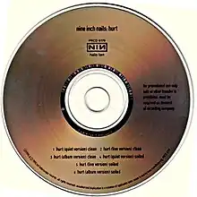 - ↑ "Hurt" (US promotional CD single). Nine Inch Nails. Interscope Records. 1995. PRCD 6179.