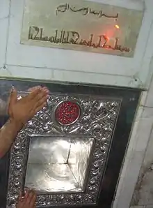 Shi'a Muslims consider pilgrimages to Husayn's tomb to be a source of divine blessings and rewards.[109] According to Shi'a tradition the first such visit was performed by Husayn's son Ali Zayn al-Abedin and the surviving family members during their return from Syria to Medina. The first historically recorded visit is Sulayman ibn Surad and the Penitents going to Husayn's grave before their departure to Syria. They are reported to have lamented and beaten their chests and to have spent a night by the tomb.[110] Thereafter this tradition was limited to the Shi'a imams for several decades, before gaining momentum under the sixth Shi'a imam Jafar Sadiq and his followers. Buyids and Safavids also encouraged this practice.[109] Special visits are paid on 10 Muharram (Ashura Pilgrimage) and 40 days after the anniversary of Husayn's (Arba'een Pilgrimage).[111] Husayn's martyrdom is often linked to the hagiography of John the Baptist[112] and Jesus Christ.[113]