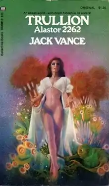 Trullion: Alastor 2262 (1973) is a science fiction novel by American writer Jack Vance, first published by Ballantine Books. It is one of three books set in the Alastor Cluster, "a whorl of thirty thousand live stars in an irregular volume twenty to thirty light-years in diameter."[1] Three thousand of the star systems are inhabited by five trillion humans, ruled by the mostly hands-off, laissez-faire Connatic, who occasionally, in the manner of Harun al-Rashid of The Thousand and One Nights, goes among his people in disguise.