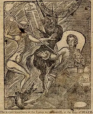 Political cartoon from 1774 by Paul Revere, depicting Death attacking Governor Thomas Hutchinson.