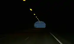 The Hvalfjörður Tunnel (Icelandic: Hvalfjarðargöng pronounced [ˈkʰvalˌfjarðarˌkœyŋk] ⓘ) is a road tunnel under the Hvalfjörður fjord in Iceland and a part of Route 1. It is 5,770 meters (18,930 ft) long and reaches a depth of 165 meters (541 ft) below sea level. Opened on 11 July 1998, it shortens the distance from Reykjavík to the western and northern parts of the island by 45 kilometers (28 mi). Passing the fjord now takes 7 minutes instead of about an hour.