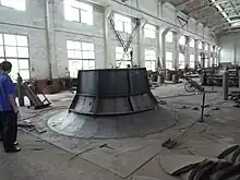 A hydraucone is a form of draft tube used with a hydro turbine. It has a bell-mouth shape and its salient feature is a flat plate deflector near the mouth. The term hydraucone was introduced by William M. White, who obtained a U.S. patent for it in 1917.[1][2][3][4]
