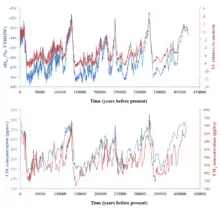 The typical δD values for the ice sheets in the polar regions range from around −400‰ to −300‰ (‰SMOW).[57] The δD values for ice caps are affected by the distance from the open ocean, latitude, atmospheric circulation as well as the amount of insolation and temperature. The temperature change affects the deuterium content of ice caps, so the H/D isotopic composition of ice can give estimates for the historical climate cycles such as the timelines for interglacial and glacial periods. [See section 7.2. Paleo-reconstruction for more details]
