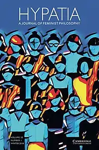 Hypatia: A Journal of Feminist Philosophy is a peer-reviewed academic journal published quarterly by Cambridge University Press. As of January 2019, the journal is led by co-editors Bonnie J. Mann, Erin McKenna, Camisha Russell, and Rocío Zambrana. Book reviews are published by Hypatia Reviews Online (HRO). HRO is edited by Erin McKenna and Joan Woolfrey. The journal is owned by a non-profit corporation, Hypatia, Inc.[2] The idea for the journal arose out of meetings of the Society for Women in Philosophy (SWIP)[3][4] in the 1970s. Philosopher and legal scholar Azizah Y. al-Hibri became the founding editor in 1982, when it was published as a "piggy back" issue of the Women's Studies International Forum.[5] In 1984 the Board accepted a proposal by Margaret Simons to launch Hypatia as an autonomous journal, with Simons, who was guest editor of the third (1985) issue of Hypatia at WSIF, as editor. The editorial office at Southern Illinois University Edwardsville handled production as well until Simons, who stepped down as editor in 1990, negotiated a contract with Indiana University Press to publish the journal, facilitating the move to a new editor.[6][7]