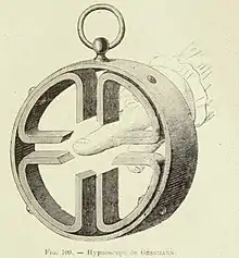 Hypnoscope is an instrument intended to determine a person's susceptibility to hypnotic influences.[1]