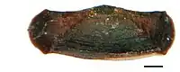 The larval case is dark brown, smooth, 8.1 mm in length and 2.5 mm wide.