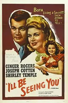 I'll Be Seeing You is a 1944 American drama film made by Selznick International Pictures, Dore Schary Productions, and Vanguard Pictures, and distributed by United Artists. It stars Joseph Cotten, Ginger Rogers, and Shirley Temple, with Spring Byington, Tom Tully, and John Derek. It was produced by Dore Schary, with David O. Selznick as executive producer. The screenplay was by Marion Parsonnet, based on a radio play by Charles Martin (1910-1983).