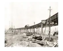 Though the ramp was nearly complete, including rails and signal work, construction was halted later that year because of America's entrance into World War II.[85][86][87] When the project was restarted in 1946, completion was delayed further due to continued material shortages and a lack of rolling stock to facilitate the new service.[83] On October 30, 1954,[54][88] the connection between the IND Brooklyn Line at Church Avenue and the BMT Culver Line at Ditmas Avenue opened. This allowed IND trains to operate all the way to the Coney Island–Stillwell Avenue terminal.[89]