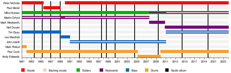 - Peter Nicholls – lead and backing vocals (1981–1985, 1989–present)