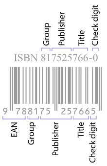 ![]() A 13-digit ISBN, 978-3-16-148410-0, as represented by an EAN-13 bar code | |