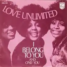 "I Belong To You" is a 1974 single by the trio Love Unlimited, which was their only single to hit #1 on the R&B chart (for one week, in early 1975). It was their second and last Top 40 entry, peaking at #27.[1]