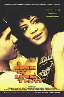I Like It Like That is a 1994 American comedy-drama film about the trials and tribulations of a young Puerto Rican man and a half-Jamaican, half-Puerto Rican American woman living in a poverty-stricken New York City neighborhood in the South Bronx. The film stars Lauren Velez, Jon Seda, Lisa Vidal, Griffin Dunne, Jesse Borrego and Rita Moreno, and was written and directed by Darnell Martin who, in her filmmaking debut, became the first African-American female filmmaker to take helm of a film produced by a major film studio.