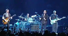 While instrumentally backed by a sixteen-piece band, West performed "I Wonder" for a benefit concert promoting and raising funds for higher education.[77] The concert was sponsored by West's charity foundation and was held on August 24, 2007, at Chicago's House of Blues.[77] One of the initiatives funded by the concert is the Loops Dreams Teacher Training Institute, which encourages the incorporation of hip-hop into Chicago Public Schools curriculum.[78] Wearing an untucked white shirt, a purple cardigan, jeans and a pair of sunglasses, West performed "I Wonder" as the opener of his ninety-minute set.[77] After about a minute, West abruptly paused the track and walked off-stage. He returned three minutes later to perform a string of hit singles from his first two studio albums, starting with "Diamonds from Sierra Leone," the lead single of his sophomore album Late Registration. West restarted "I Wonder" later on and at one point even played a few chords on an upright piano.[77] During a soundcheck prior to start of the charity concert, West met with well over 200 of the local students.[78] West also gave the audience members a sneak peek of the early production stages of his forthcoming Glow in the Dark Tour.[78] In a review of the concert, Chicago Tribune music critic Greg Kot wrote that he was taken aback by the sudden halt of "I Wonder." He also thought West's piano playing was under-rehearsed and felt the arrangement was not as fully realized as the song's recorded version. However, Kot still praised the live rendition of "I Wonder" and remarked that West's performance "aspired to stadium-rap heights".[77]