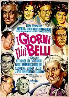 I giorni più belli (transl. The Best Days or The Most Beautiful Days) is a 1956 Italian comedy film directed by Mario Mattoli and starring Franco Interlenghi.[1]