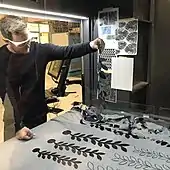 Berry was so committed to this cause that he exhibited at the Children's Museum of Art New York where he showed the Secret Garden in 2017.[52] In 2018 he travelled the United States and gave lectures in many schools[121] and when he found that many students were inspired to do his work, but didn't have the correct equipment, Berry arranged for many companies to step in and donate tools like scissors, denim and rotary cutters.[122] Many children, parents and teachers send him examples of their work inspired from him.[71]