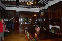 Iandra's interior reflects a number of Federation era or Edwardian characteristics, including large areas of timber wall panelling. The carved stairway and foyer panels are of oak, and the dining room panels are of Queensland black bean (Castanospermum australe).[2][10][1]