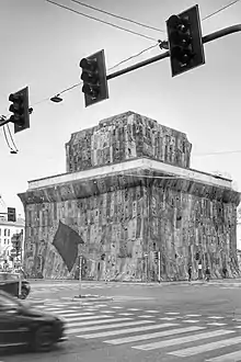 Ibrahim Mahama (born in 1987) is a Ghanaian author and an artist[1] of monumental installations.[2][3] He lives and works in Accra, Kumasi and Tamale, Ghana.[4] He is the founder of Red Clay Studio, Savannah Centre for Contemporary Arts and Nkrumah Volini.
