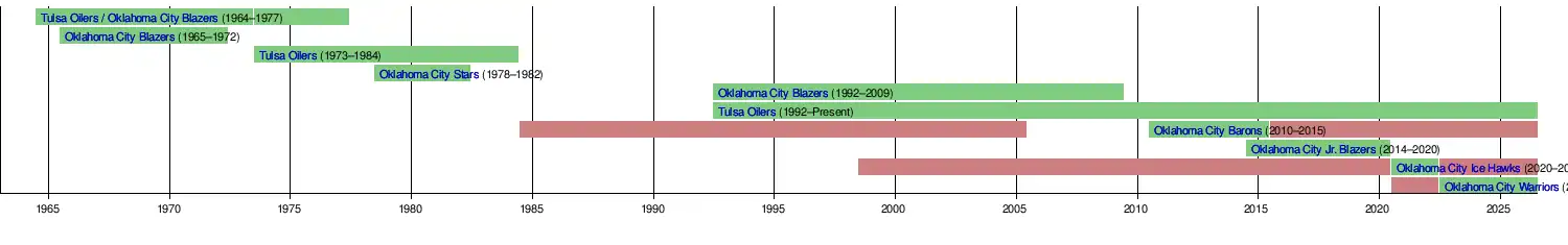 | Tulsa Oilers | Tulsa | CPHL | 1964–1973 | Oklahoma City Blazers (second) |