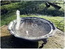 Ice spikes have been reported as a rare natural phenomenon for decades.[3] A model of the mechanism of formation was put forth independently by O. Bally and H.E. Dorsey in the early 20th century and this is still the most widely accepted explanation of the phenomenon today.[4] Spikes tend to form in containers such as bird baths and pet drinking bowls, where the water freezes quickly, rather than in large bodies of water such as lakes and ponds.[5] A number of web pages displaying photographs of unusual ice formations and discussing the phenomenon have been published, and a number of cases of ice spikes being formed on ice cubes in domestic refrigerators have been reported.[6][7] The ability to grow ice spikes in a controlled environment has prompted a small number of investigations by the researchers in the Physics Department of the California Institute of Technology under the direction of Kenneth G. Libbrecht into the conditions needed for the spikes to form.[3][4]