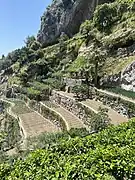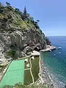 The Miramare gradually became more established and ultimately one of the more popular hotels on the Amalfi Coast. Cinque took to rowing his small fishing boat in the late afternoons to a headland two km south of Positano in the Laurito district that everybody knew as La Punta (The Point), where he dropped his lobster pots. It had a small beach, lush vegetation, and most notably was characterized by a tall cliff that abruptly met the sea. At the top was a small, white-walled fisherman's chapel called San Pietro. Cinque fell in love with it and resolved to buy the land from his brother-in-law, which he accomplished in 1962.[2][1] In 1962 when Cinque purchased the land it was described as "the promontory between Positano and Praiano, that is just a rock with a small 17th century chapel of San Pietro."[3] Positano, at the time, was a small fishing village, but it was gradually starting to attract the attention of tourists. Following this purchase, Cinque undertook a gradual expansion of the chapel into an apartment with a garden and terraces, doing his best to avoid disturbing the natural character of the land. His idea was to build a hotel that would blend in with the surrounding landscape.