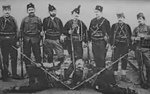 Based in Split, Trifunović-Birčanin was appointed by Mihailović to command Chetnik forces over Dalmatia, Herzegovina, western Bosnia and southwestern Croatia in the spring of 1942.[13] According to historian Jozo Tomasevich, "both Chetnik and Italian documents clearly show that his role as liaison officer between the Chetniks and the Italian Second Army was just as important as his command over the Chetnik formations in those areas."[9] On 23 June 1942, assisted by Trifunović-Birčanin, the Italians set up the first units of an Italian-controlled Anti-Communist Volunteer Militia known as MVAC (Italian: Milizia Volontaria Anti-Comunista), dedicated to "the annihilation of communism".[14] In 1942 and 1943, 19,000–20,000 Chetniks, an overwhelming proportion of which were organised as Italian auxiliary forces in the MVAC in the Italian-occupied parts of the NDH, were equipped with arms, ammunition and clothing by the Italians.[9] In 1942, the agreements with the Italians came under threat when they "threatened to cut off provisions and funding" after warning Jevđević and Trifunović-Birčanin that "their units were provoking disorder."[15]