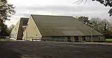 according to Pevsner.[6] This oldest part of the school was designed by County Architect Mr Widdows, who saw it as resembling 'an eastern fortress'. This design was echoed by the tops of the main entrance gateposts.