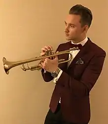 Ilya Serov is a Los Angeles-based jazz trumpet player and singer. Serov released his first album, September In The Rain, in December 2013.[1] Serov was named Best New Artist at the Hollywood International Entertainment Awards in 2014.[2][3][4][5][6][7][8][9][10][11] Ilya Serov featured Roger Kellaway on an original rendition of Django Reinhardt's song "Swing 42" in 2017. On January 9, 2018, Ilya Serov released the single "Tangerine" that featured Grammy Award-winning Latin percussionist, Poncho Sanchez.[12] Ilya Serov released his second album, Back In Time in September 2018 which featured Poncho Sanchez, Roger Kellaway, Bruce Forman and Eric Marienthal.[13] In 2018, Serov performed on the Dave Koz and Friends at Sea Cruise, playing solo shows and appearing with musicians, such as Dave Koz, Michael Lington, Larry Graham and Jonathan Butler. Dave Koz invited Serov to rejoin the cruise in 2019 for ports in Australia.[14]