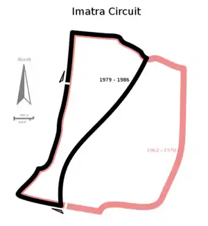 The Imatra Circuit is a motorsport street circuit in Imatra, Finland. The circuit has existed in two versions, and has been exclusively used for the "Imatranajo" motorcycle road race. From 1962 to 1978 a 6.030 km (3.747 mi) clockwise street circuit in the east of the town of Imatra was used. The circuit ran along the Vuoksi river and a railway line that had to be crossed. From 1979 to 1986 a shorter circuit was used. This was only 4.950 km (3.076 mi) long and consisted mostly of the western part of the original circuit.