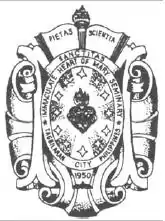 The escudo or escutcheon has five (5) major elements. The "base" represents God's omnipotent power and grace protecting or shielding Mary from original sin– represented by the monogram "M". The "Flaming Heart" represents Mary's loving and maternal concern for the seminarians and professors of the seminary. It is surrounded by "Twelve Stars" -- adapted from her appearance to St. Bernadette of Lourdes in France telling her that "I am the Immaculate Conception," hence the title, Immaculate Heart of Mary, is adopted. Over the "escudo" is an open book representing the search for knowledge by the seminarians through diligent studies. It is highlighted by the "Burning Torch" representing the "lumen Christi," or the light of Christ, which is always given to those who earnestly seek for knowledge and truth.