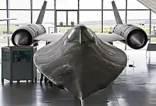 The American Air Museum was opened by Queen Elizabeth II on 1 August 1997. The total cost of the project had been £13.5 million.[71] The museum was re-dedicated on 27 September 2002, in a ceremony attended by the then Prince Charles & former President George H. W. Bush. Since being opened, the museum has had its glass front temporarily removed to permit access for an SR-71 Blackbird[80] and Consolidated B-24 Liberator.[81] The SR-71, serial number 61-7962, is the only example of its type on display outside the United States, and set a flight altitude record of 85,069 feet (25,929m) in July 1976. Besides the Blackbird, nineteen other American aircraft are on display. Notable examples include a C-47 Skytrain which flew with the 316th Troop Carrier Group and participated in three major Second World War airborne operations; the June 1944 Normandy landings, Operation Market Garden and Operation Varsity, the airborne crossing of the River Rhine in March 1945.[82] The museum's B-29 flew during the Korean War as part of the 7th Bomb Wing;[83] it is the only example in Europe and one of only two preserved in museums outside the United States. The B-52 flew 200 sorties during the Vietnam War as part of the 28th Bomb Wing.[84] The General Dynamics F-111 on display flew 19 missions during the 1991 Gulf War as part of the 77th Fighter Squadron.[3][85]